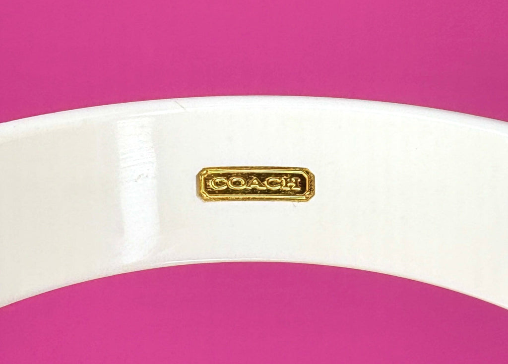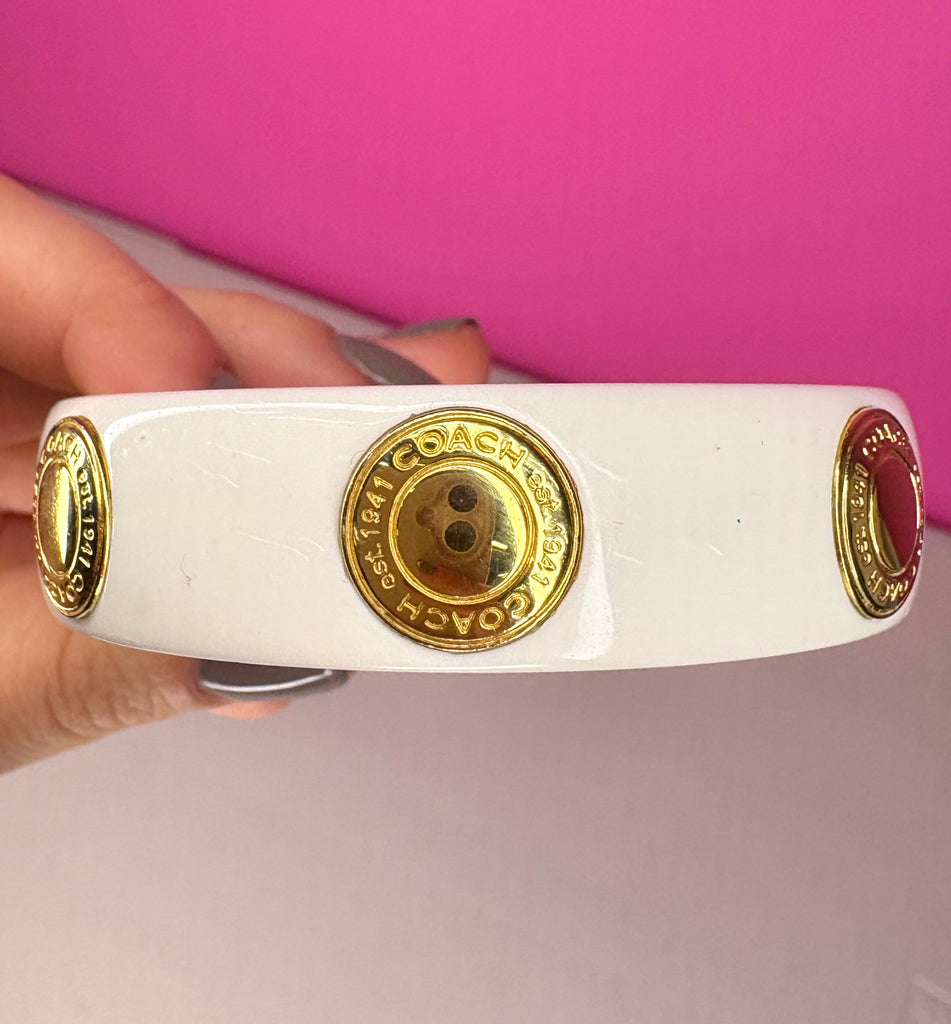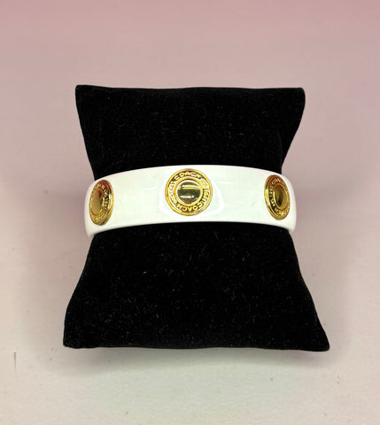 FEATURES: White Resin Coach Bangle Bracelet with Goldtone Medallions all the way around. Goes with Absolutely Everything!!!