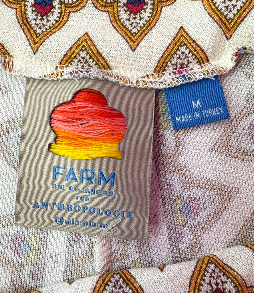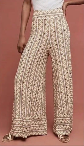 FEATURES:  Effortlessly versatile, these Anthropologie Farm Rio Palazzo Pants can be worn with a tailored button down shirt and blazer to the office or with fitted tees and tribal necklace for a weekend escape.  Neutral shades in an indie boho, Brazilian vine print. Flattering wide leg and stretch elastic waistband for the perfect comfortable fit.  95% Viscose; 5% Elasthane.  Original Retail $148.