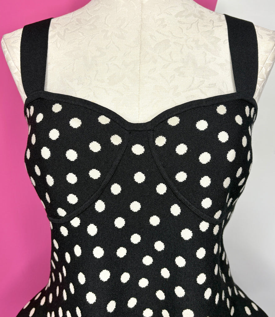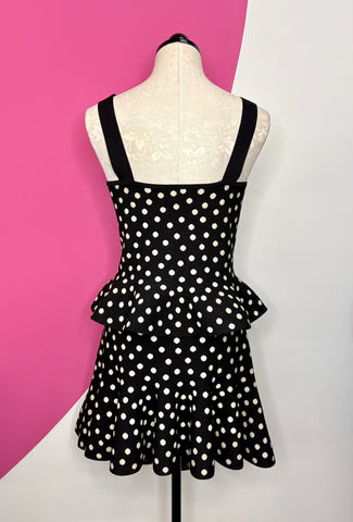 FEATURES: There's Never a Bad Time for a Polka Dot! From the Express Body Contour Collection comes this Super Cute 2 PC Set. You will receive both the top + the skirt - and for only $44.99!!! Both pieces are jet black knit and covered in all over white polka dots. The top has flattering sweetheart styling with nice wide straps to cover your bra and a flirty peplum bottom. The matching skirt has a flouncy bottom and elastic waistband for the perfect fit. 48% Polyester; 34% Viscose; 16% Nylon; 2% Spandex. Add a hat for the sun and a pair of white sneakers - Adorable!!!