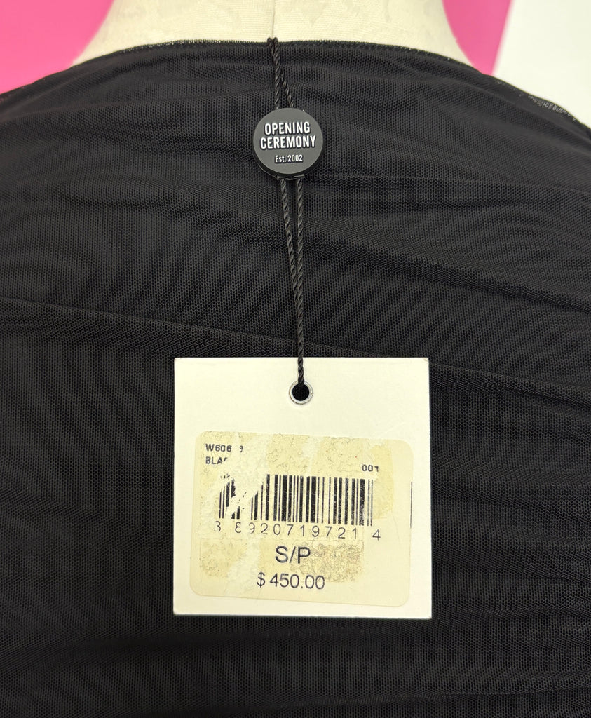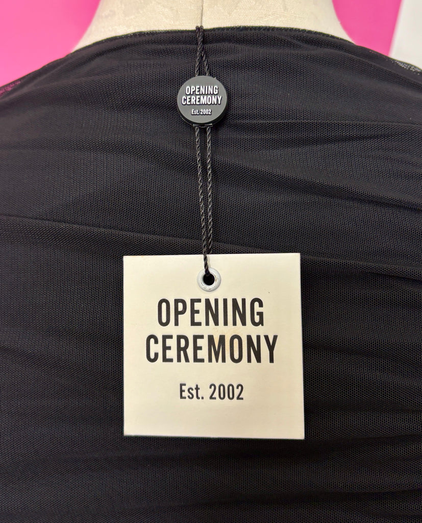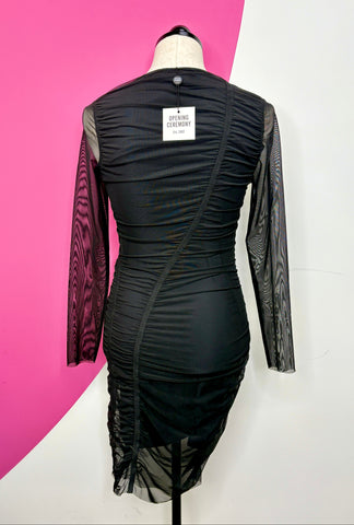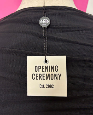 FEATURES: Super Sexy BRAND NEW Opening Ceremony Dress. Perfect for a Night out! Black Mesh Bodycon Mini stretches over your body and hugs you in all the right places. Long Sleeve, Sexy Square Neckline perfect for showing off your favorite necklace. 96% Polyester; 4% Spandex. Original Retail $450.
