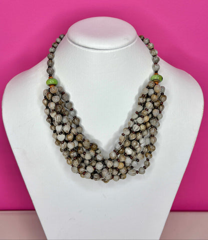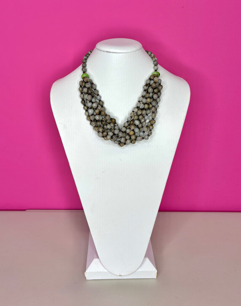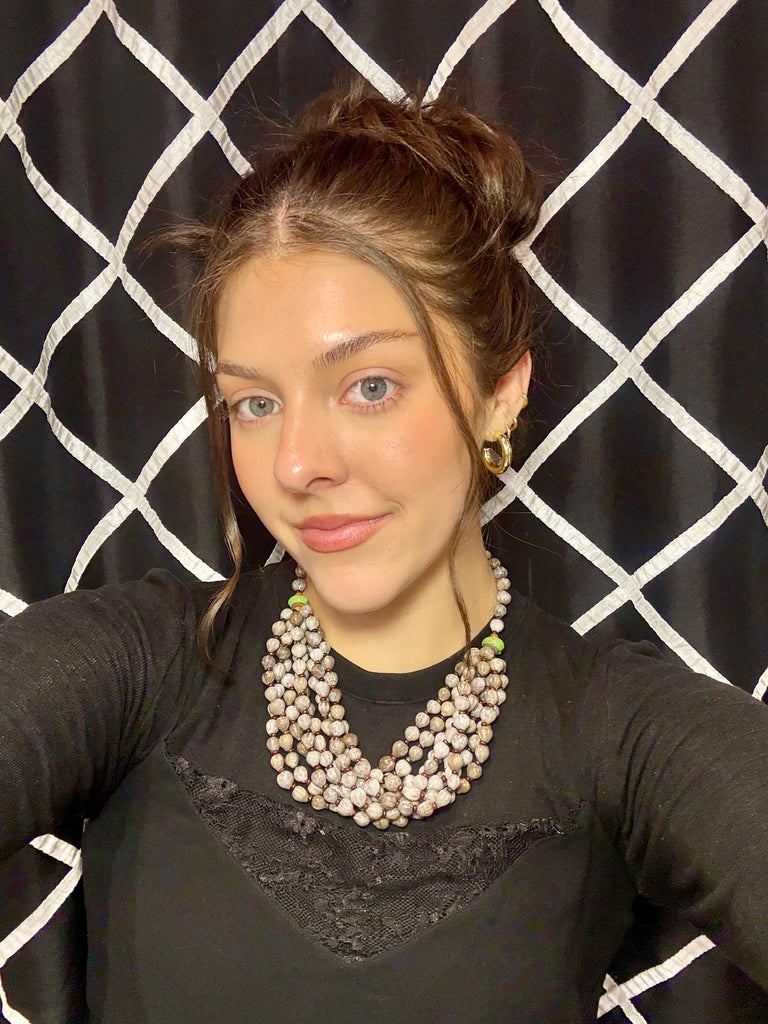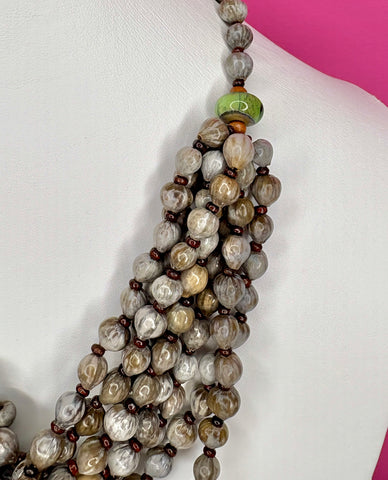 FEATURES: This Unique Handcrafted African Zulu Necklace features lightweight multi-strands of Natural Imfibinga seeds (aka Job's Tears) blended with earthy-toned glass beads. The layered twist style creates a bold, textural look that sits beautifully at the neckline. Unique artisan piece handmade and full of cultural character, this piece is both striking and versatile — a perfect statement necklace for elevating any outfit.
