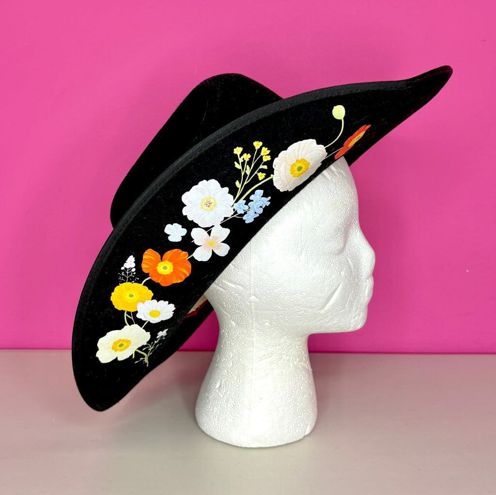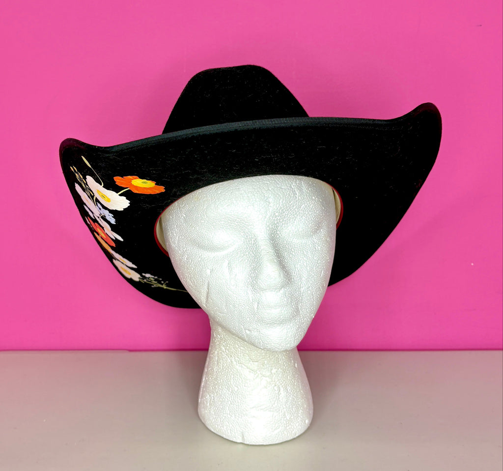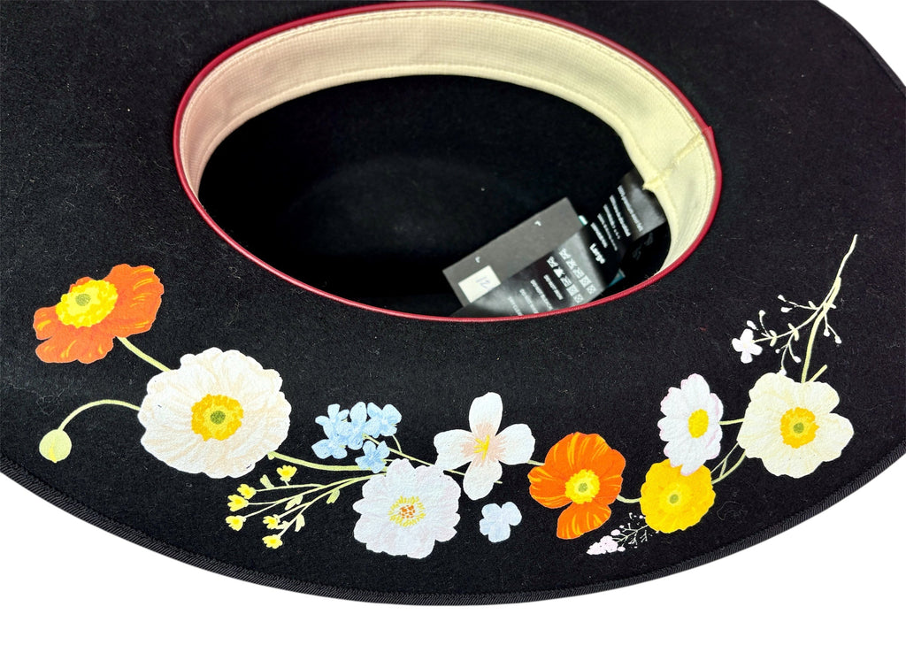 FEATURES: Rediscover your wild side with Wild As Heck. Their hats feature unique artwork by independent artists, designed to inspire confidence and embrace your style. Bold Hat for Confidence! This Wild as Heck Stevie Western hat does just that! Crafted from 100% luxurious Australian wool, a biodegradable, renewable, and natural resource. Artwork by Leni Lupin. Floral Images are not hand painted, but hand applied with our method. All artwork is waterproof and will not smudge. Original Retail $265.