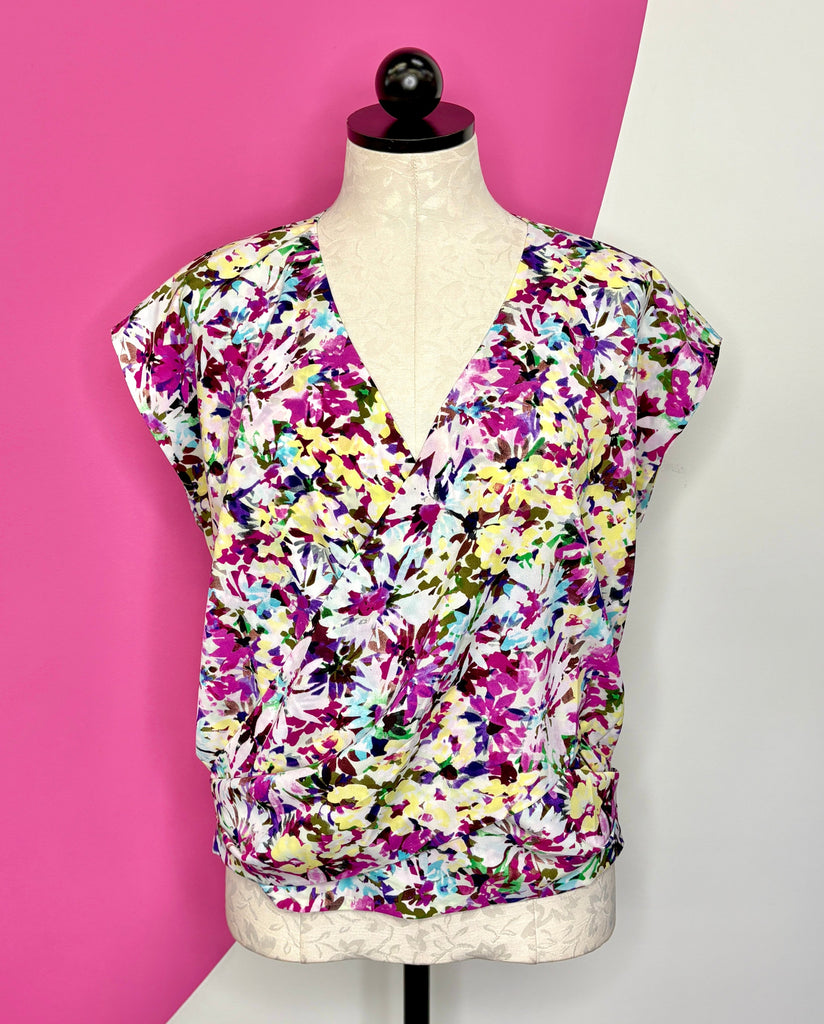 CABI EDEN FLORAL FAUX WRAP TOP - M